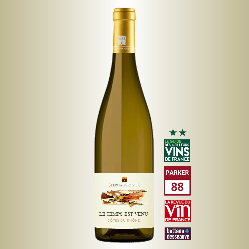 “A l’instar la version rouge de cette cuvée, le Temps est Venu blanc de Stéphane Ogier propose un rapport qualité-prix des plus intéressants. Au-delà de sa gourmandise et de son fruité généreux, le vin s’appuie sur une fraîcheur et une minéralité surprenantes. Parfait pour accompagner une planche de calamars ou quelques fromages affinés.”